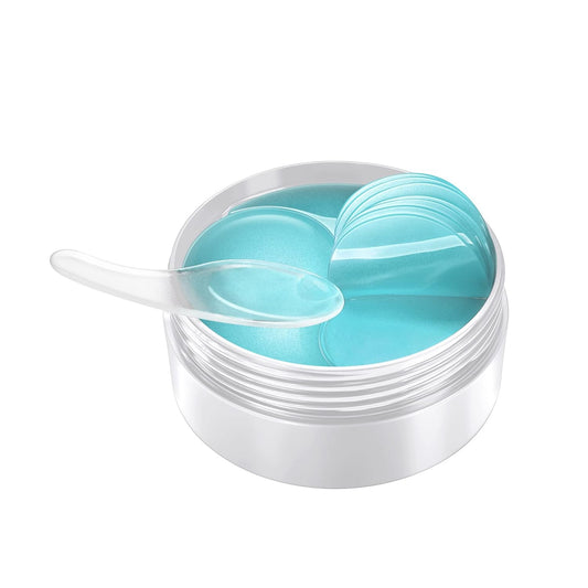 Under Eye Patches Silicone - 2 Pairs Reusable Eye Patches, Eye Wrinkle Patches, Reusable Under Eye Mask, Plump Fine Lines & Wrinkles, with Metal Eye Cream Applicator, Tin Case, Blue