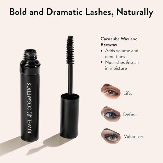 Juwel Cosmetics Onyx Black, Volumizing and Lengthening Mascara, Long-Wear Waterproof Mascara with Carnauba Wax and Beeswax, pH Balanced for Sensitive Eyes, Paraben-free, 10ml