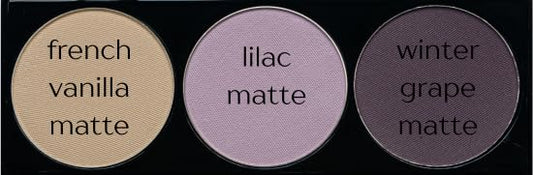 Off White, Matte Light Lavender, and Matte Deep Purple Vegan Eyeshadow Trio Palette; Talc, Paraben & Cruelty Free
