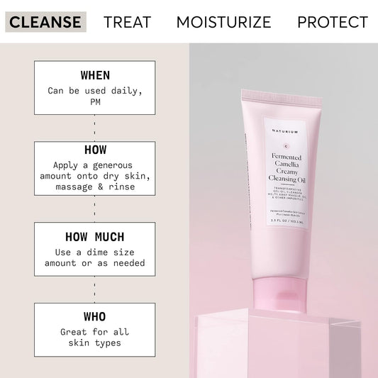 Naturium Camellia Creamy Cleansing Oil, Fermented Camellia Oil & Extract Plus Linoleic-Rich Oils, 3.5 oz