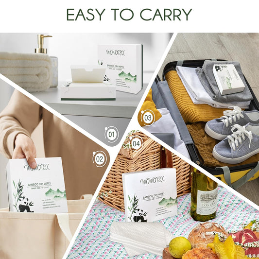 Travel Size Bamboo Viscose Disposable Face Towel Biodegradable Large Dry Face Wipes 30 Count/2 Box Extra Thick Soft Clean Facial Towels for Facial and Body Cleansing, Travel, Camping