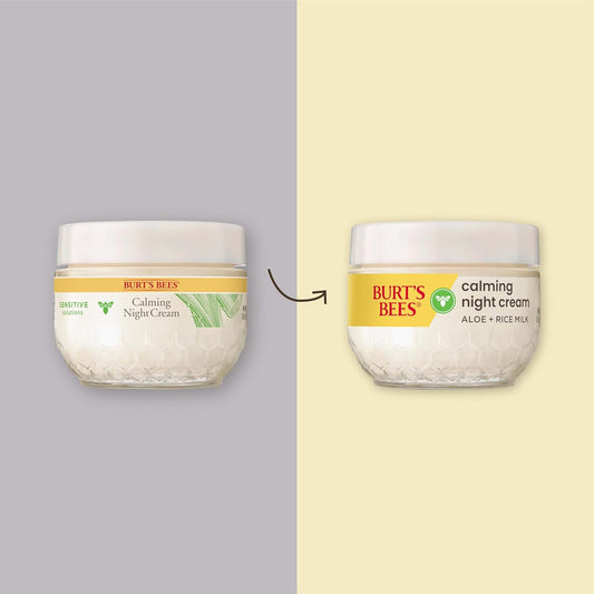 Burt's Bees Calming Night Cream With Aloe and Rice Milk, Face Moisturizer For Sensitive Skin Infuses Skin With Moisture While You Sleep, 98.8 Percent Natural Origin Skin Care, 1.8 oz. Tub