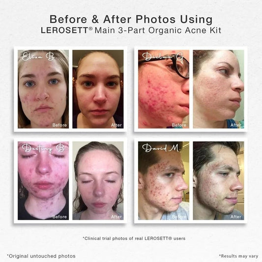 LEROSETT Acne Kit Includes Cleanser Moisturizer & Spot Treatment Mask Organic Calming Aloe & Clay Based, Clears Acne, Pimples, Blackheads & Breakouts, Vegan Acne Kit, For All Skin Types