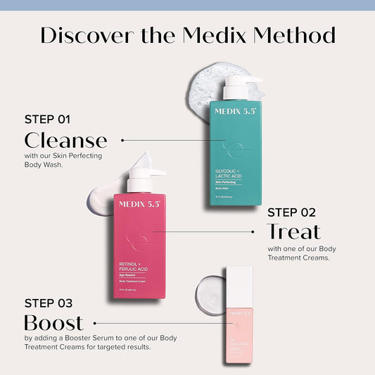 MEDIX 5.5 Anti Aging Skin Care 3PC Set | Retinol Body Cream + Exfoliating AHA Glycolic Acid Foaming Face Wash & Body Wash + Hyaluronic Acid Serum Booster, Wash + Treat + Hydrate Skincare Set, 3PC Set
