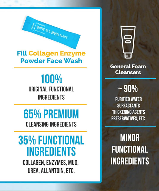 UNIZAAR Fill Collagen Enzyme Powder Face Wash Set of 2 – (0.007 oz * 60EA) Luxurious French Collagen & Urea Infused Korean Cleanser, Travel Face Wash, Travel Size Face Wash for Women, Korean Skin Care