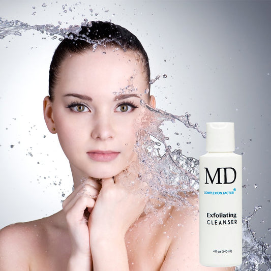 MD Complexion Factor Exfoliating Cleanser (4fl oz) Exfoliating Facial Cleanser with Benzoyl Peroxide - Gentle Face Exfoliator & Cleanser for Deep Pore Cleansing & Removing Acne - Skin-friendly Formula