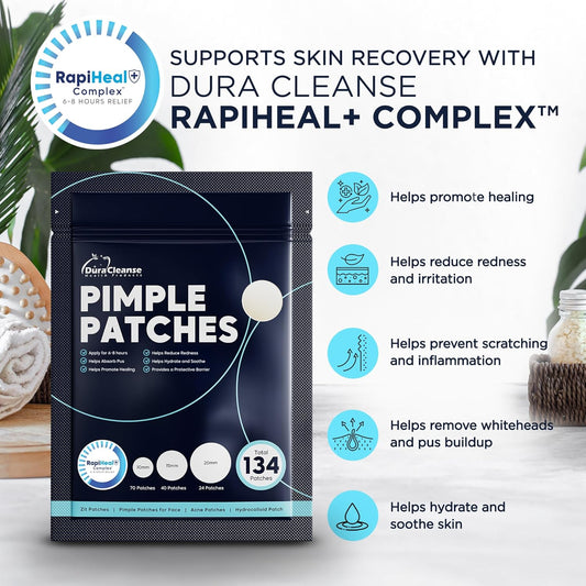 Pimple Patches for Face - 134 Count Hydrocolloid Acne Patches - Zit, Blemish, Cystic Acne Dots & Dark Spot Treatment - Invisible Clear Pimple Patch Stickers for Forehead, Chin, Nose, 3 Sizes (S, M, L)