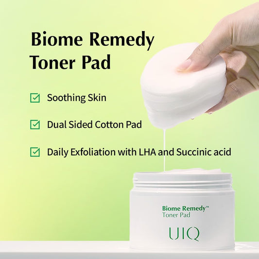 UIQ Biome Remedy Toner Pads, Dual-Textured Facial Pad for Hydrating, Moisturizing, Calming, Pore Care, Non Comedogenic, Daily Toner Pads for Soothing Skin 6.08 fl. oz., 70 Sheets