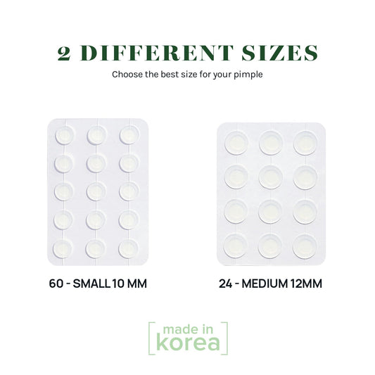 Korean Pimple Patches - 84 Count / Made in KOREA - Absorbing Hydrocolloid 3 Size Acne Patches for Blemishes. Zits Cover, Spot Stickers for Face and Body, Day and Night, Round Shape