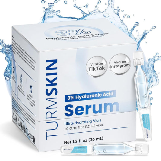 TURMSKIN® Hyaluronic Acid Serum Ampoules [ULTRA HYDRATING VIALS] - 3% Hyaluron Booster for Glass Skin & Anti Aging - 24 Hours Hydration - Soft PE Triple Hyaluronic Complex for Faceskin Repair & Renew