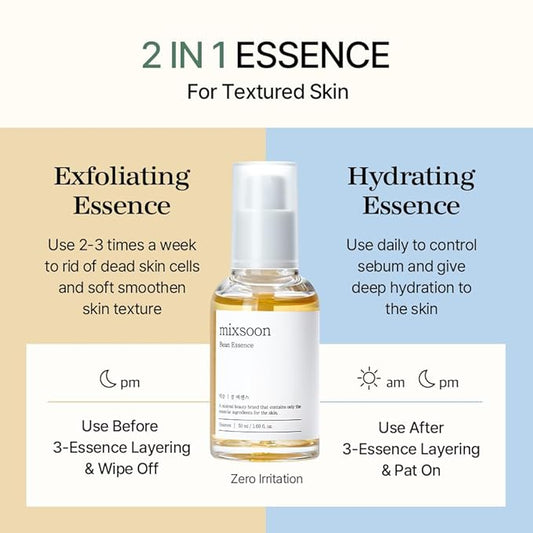 mixsoon Bean Essence, Vegansnail, Exfoliating Essence for face, Hydrating Korean Skin Care,Glassskin 1.01 fl.oz/30ml