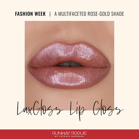 Runway Rogue LuxGloss Lip Gloss, High-Pigment Shimmery Rose-Gold Lip Gloss, ‘Fashion Week’