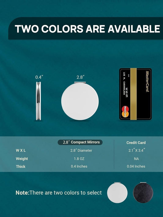 Compact Mirror,Set of 2 Round Double-Sided Makeup Small Mirror for Purse with 1x/3x Magnification PU Leather (Black, 2.8")