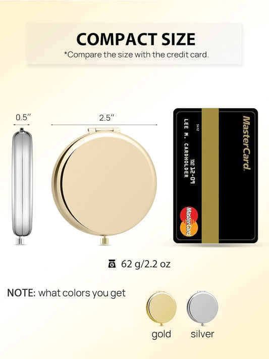 Compact Mirror Bulk, Set of 2 Double-Sided 1X/2X Magnifying Purse Pocket Makeup Mirrors(Round, Gold and Silver)