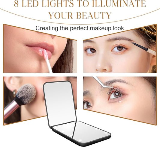 Makeup Mirror with Lights, 3X Magnifying Led Compact Travel Mirrors for Pocket,Purse, Double-Sided Foldable Handheld, Vanity Mirror with Lights, Makeup Vanity Desk Bathroom, Gifts for Women