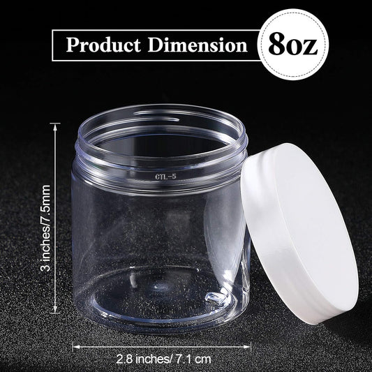 Patelai 4 Pieces Round Wide-mouth Leak Proof Plastic Container Jars with Lids for Travel Storage Makeup Beauty Products Face Creams Oils Salves Ointments DIY Making(8 Ounce,White)