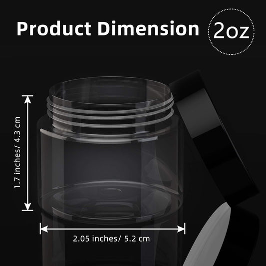 200 Pcs 2 oz Black Plastic Container Cosmetic Jars with Lid Round Plastic Jars Small Travel Containers for Storage Makeup Creams Lotion Ointments