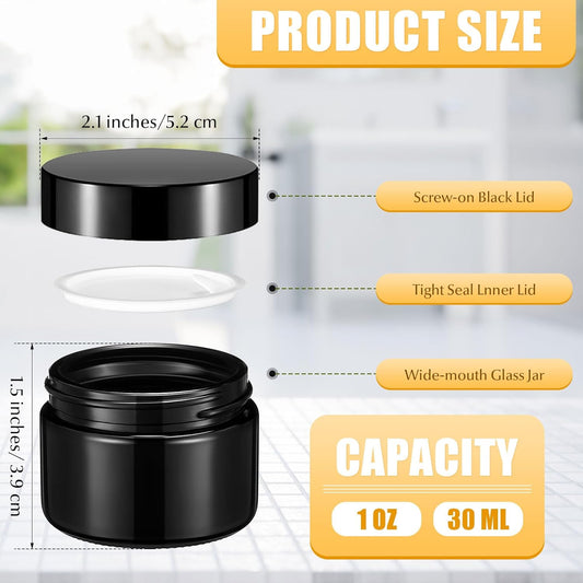 Domensi 100 Pcs 1 oz Glass Jars with Lids Bulk Round Glass Cosmetic Jars Lids 1 oz Small Travel Containers with Inner Liner for Lotions Powders Ointments Sample Cream(Black,Black)