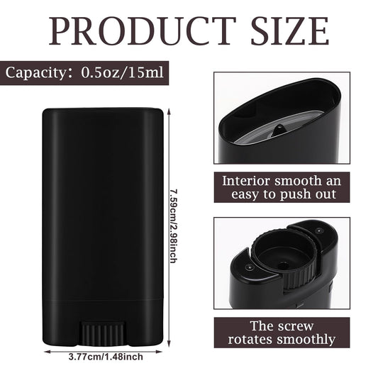 30 Pcs Empty Deodorant Containers Twist up Filling Stick Plastic Deodorant Container Refillable Bottles Bottomfill Round Lip Balm Tubes for Homemade DIY Lipstick Crayon(15 ml,Black)