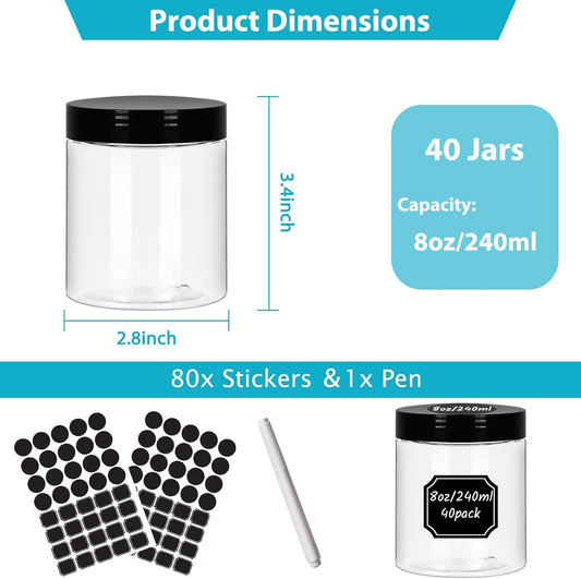 8 oz Clear Plastic Round Jars with Black Lids, 40pcs 8oz 250ml Leak-Proof Wide-Mouth Cosmetic Storage Containers for Slime, Kitchen Use, Beauty Products, Cream, Scrubs, Bath Salt and More