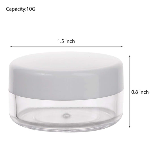 100 Count Mini Makeup Sample Containers with Lids 10g Plastic Cosmetic Containers Refillable Traveling Jars for Skin Care Products - White