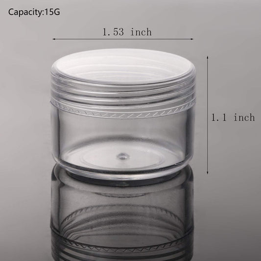 100 Count Refillable Sample Containers with Lids Cosmetic Jars 15 Gram Empty Cream Jars Leak Proof Makeup Containers for Traveling - Clear