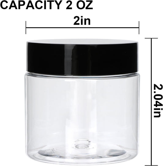 50pcs 2 oz Clear Plastic Round Jars with Black Lids, 2oz 60ml Leak-Proof Wide-Mouth Cosmetic Storage Containers for Kitchen Use, Beauty Products, Cream, Scrubs, Bath Salt and More