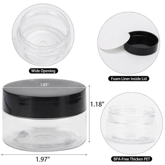 50 Count 1oz Cosmetic Containers with Lids BPA Free Plastic Sample Containers Empty Makeup Containers Refillable Cosmetic Jars Leakproof Travel Jars - Black