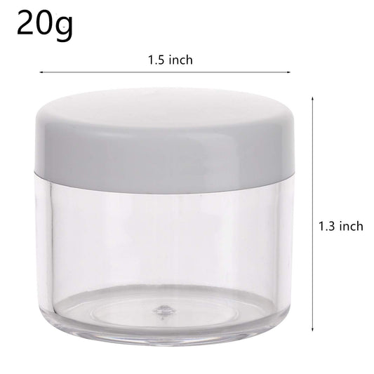100 Count Sample Containers with lids 20g Plastic Cosmetic Jars Leak Proof Traveling Makeup Containers for Cream and Lotions - White