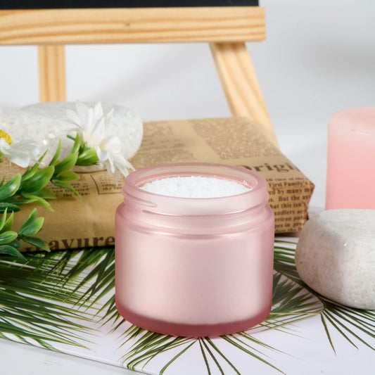 2oz Glass Jars 24 Pack, Hoa Kinh Mini Round Pink Frosted Glass Jars with Inner Liners and Pink Lids, Perfect for Storing Lotions, Powders and Ointments