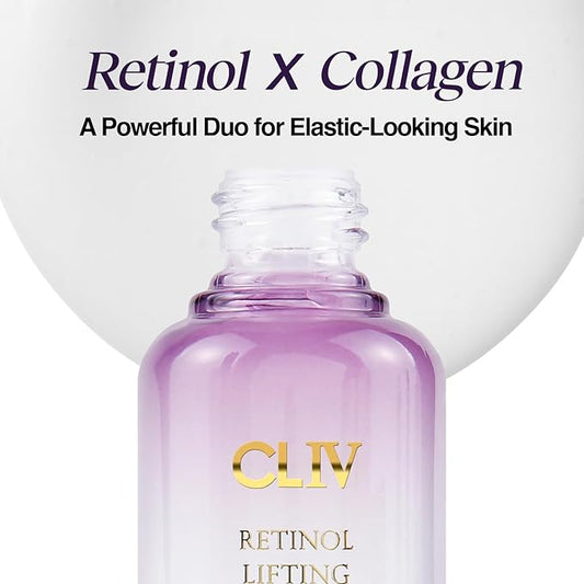 CLIV Retinol Lifting Ampoule, Korean Skincare with 85% Collagen Solution, Retinol, Peptides & Fermented Botanical Complex for Skin Texture and Moisture Support, ballon serum 1.01 fl oz