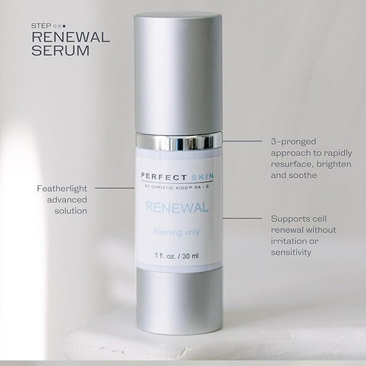PERFECT SKIN BY CHRISTIE KIDD, PA-C | Renewal Serum–Evening Only Exfoliating Serum w/Glycolic, Lactic Acid, Retinoid & Niacinamide – Brightens, Smooths, Reduces Fine Lines–Anti-Aging Skincare 1oz/30ml