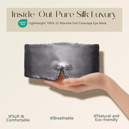 ZIMASILK 100% 22 Momme Mulberry Silk Sleep Mask - Full Silk Filled, Ultra-Soft & Breathable, Face-Hugging Blackout Eye Cover for Sleeping (Blackish Grey)