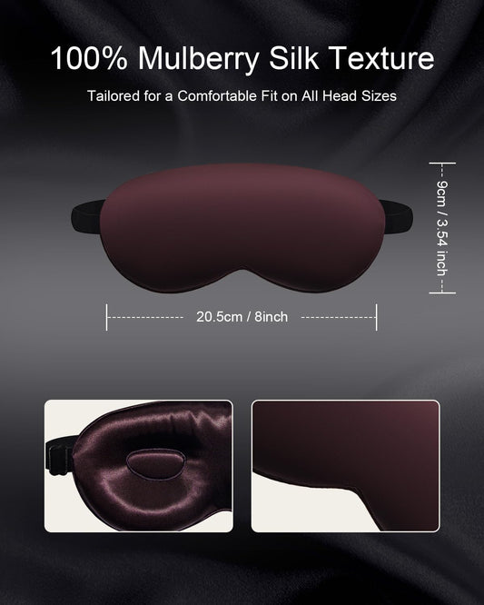 Luxury 22 Momme 100% Mulberry Silk Sleep Mask – 3D Eye Mask with Adjustable Strap, Gentle on Skin and Eyes, Provides Complete Light Blockage for Deep Sleep (Burgundy, Adjustable)