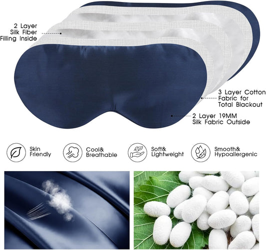 Mulberry Silk Blackout Adjustable Sleep Eye Mask for Men/Women Travel Plane,Navy Blue