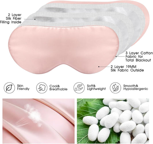Mulberry Silk Blackout Adjustable Sleep Eye Mask for Men/Women Travel Plane,Blush Pink