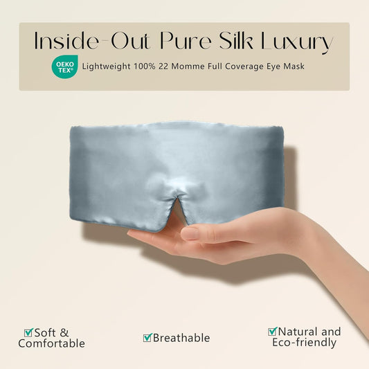 ZIMASILK 100% 22 Momme Mulberry Silk Sleep Mask - Full Silk Filled, Ultra-Soft & Breathable, Face-Hugging Blackout Eye Cover for Sleeping (Bluestone)