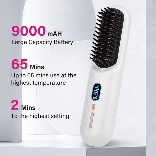 Cordless Hot Comb Rechargeable Hair Brush Straightener Heat Pressing Combs Ceramic Electric Straightening Comb, Anti Burn for Natural Black Beard Wigs Meige (9000mA)