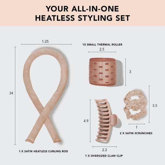 Kitsch Satin Heatless Hair Curler Styling 5pc Gift Set - Satin Heatless Hair Curler w/ 2 Scrunchies, Ceramic Thermal Roller & Claw Clip, Gifts for Women, Hair Roller Styling & Accessories- Champagne