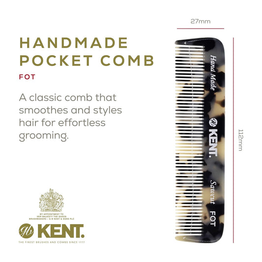 Kent FOT TY Fine Tooth Comb for Men - Handmade Pocket Comb for Travel, Styling, Fine or Thinning Hair, Mustache and Beard Care Handpolished Saw-Cut Made in England