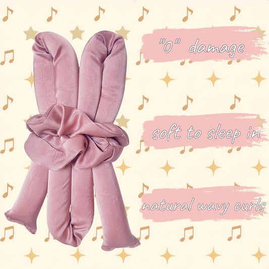 Serenade Textured Satin Heatless Curls Overnight, Heatless Hair Curler Curling Set for Women and Girls to Sleep in, with 2 Satin Scrunchies and 1 Clip for Overnight Curls, Pink