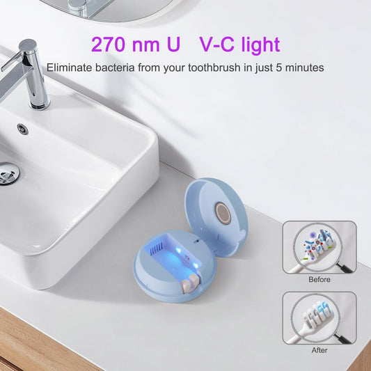 Toothbrush Holder, Toothbrush Cleaner Case, Portable USB Charging Toothbrush Cover with U V-C Light, Travel Toothbrush Holder (Blue)