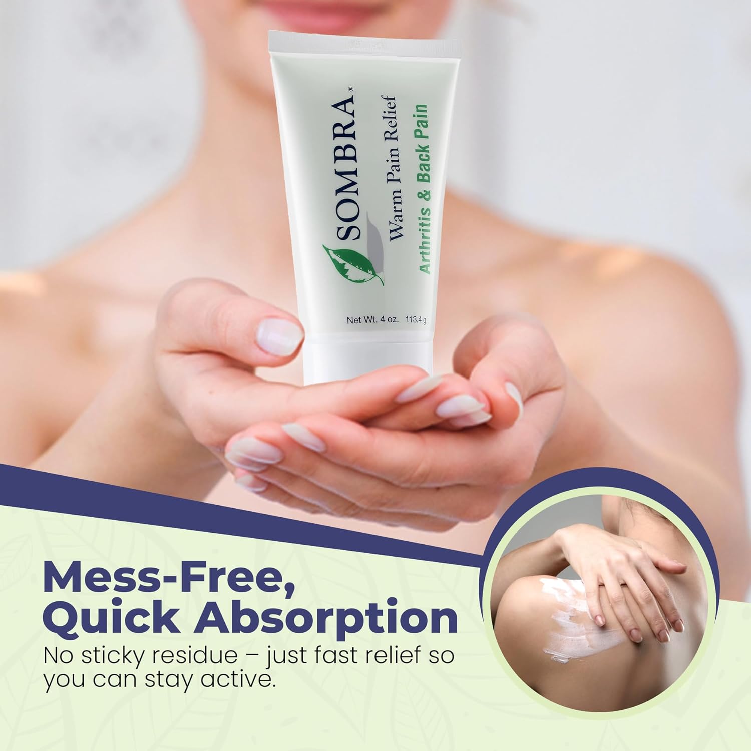 Sombra Warm Pain Relief Gel, Warm Relief for Arthritis and Chronic Pain Pre-Workout Muscle Rub Vegan Formula Free of Artificial Fragrances, Dyes, NSAIDs, Wax, Petroleum, Alcohol - 4oz Tube