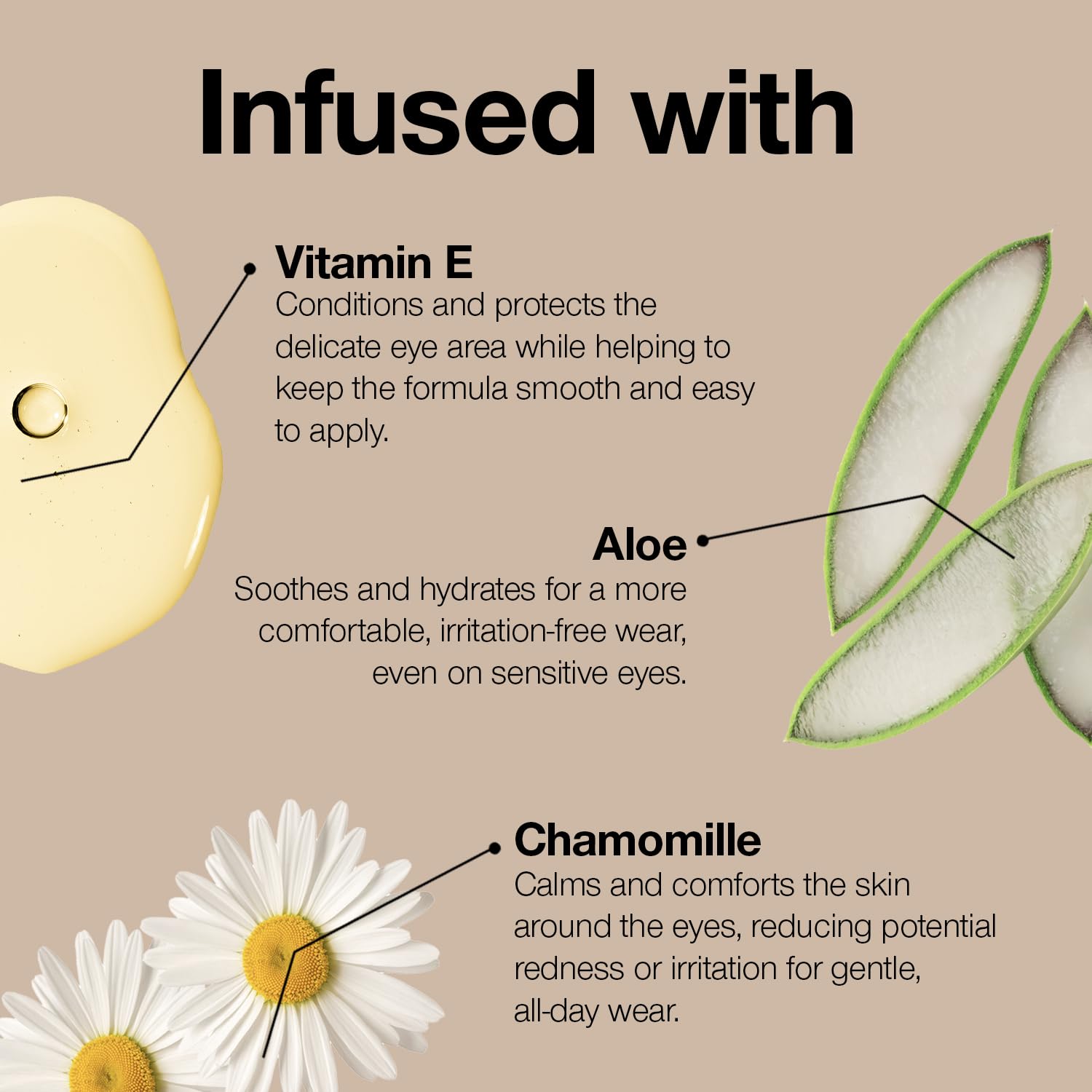 - BOTANICAL AND VITAMIN INFUSED COSMETICS: Infused with nourishing skincare ingredients like aloe, camellia, safflower, ginkgo biloba, ginseng and chamomile that helps to moisturize skin.