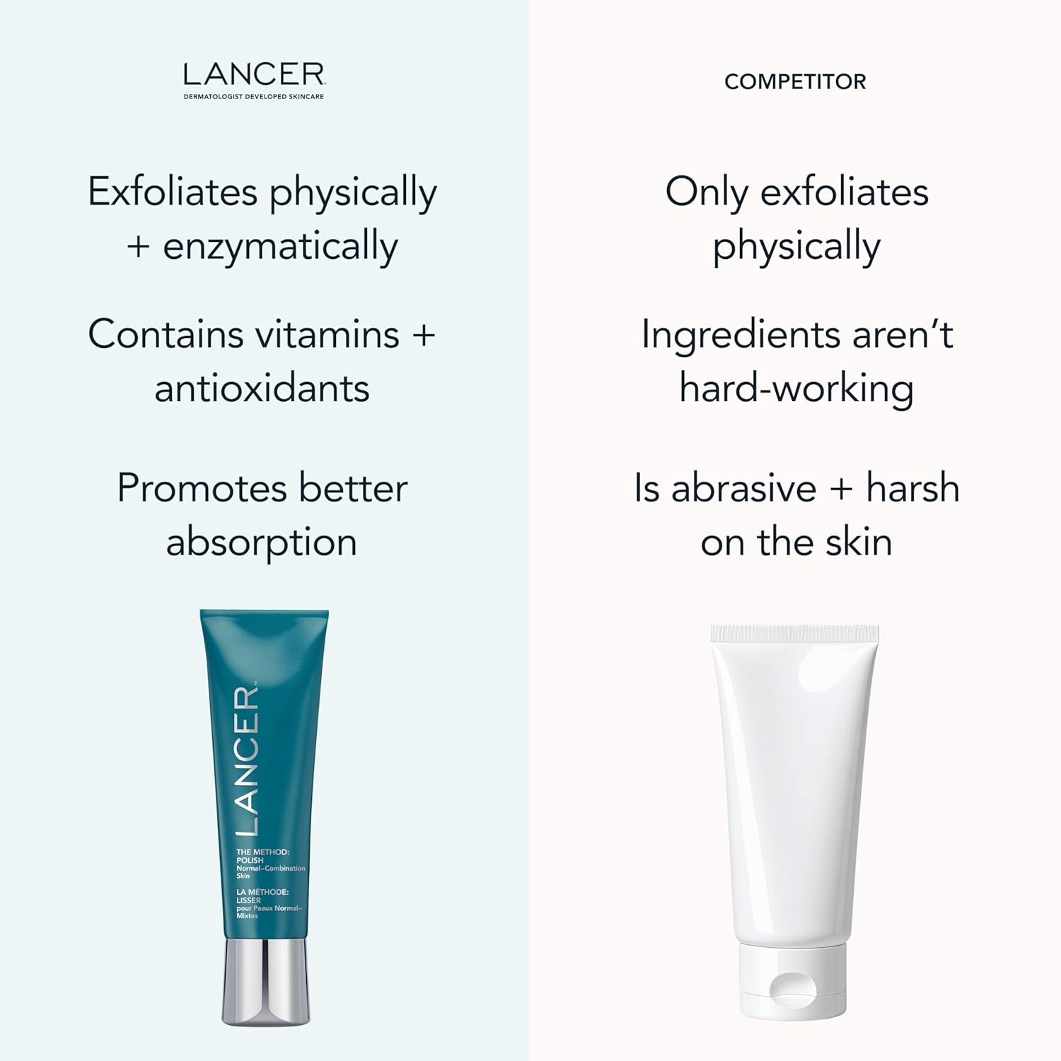 Lancer Skincare The Method: Polish Facial Exfoliator, Daily Exfoliating Face Scrub with Natural Minerals, Normal Combination Skin, 4.2 Fluid Ounces