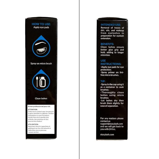 - Stacy Lash Primer - is designed to prep lashes before application of extensions. Eyelash primer for lash extensions removes traces of body oils, residual make-up and dust, thus making them perfectly clean to ensure long lasting hold of individual extensions to natural lashes.