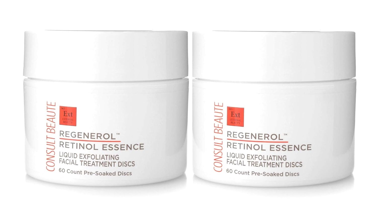 Consult Beaute - Regenerol - Retinol Exfoliating Facial Treatment Pads - Micro Exfoliation for Face - Smoother, Glowing Skin - 60 Disposable Wipes (2Pack)