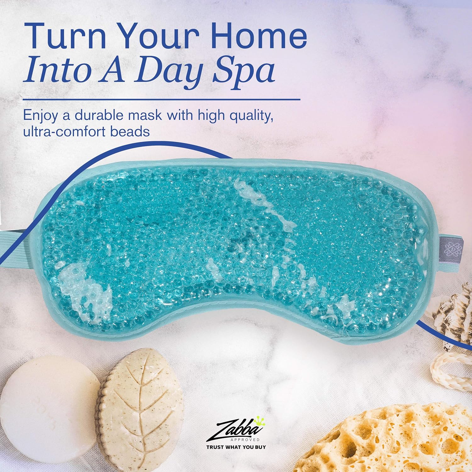 Facial Mask - Get Rid of Puffy Eyes - Migraine Relief, Sleeping, Therapeutic Hot Cold Compress Pack - Gel Beads, Spa Therapy Wrap for Sinus Face Puffiness Headaches (Green + Ice Pack)