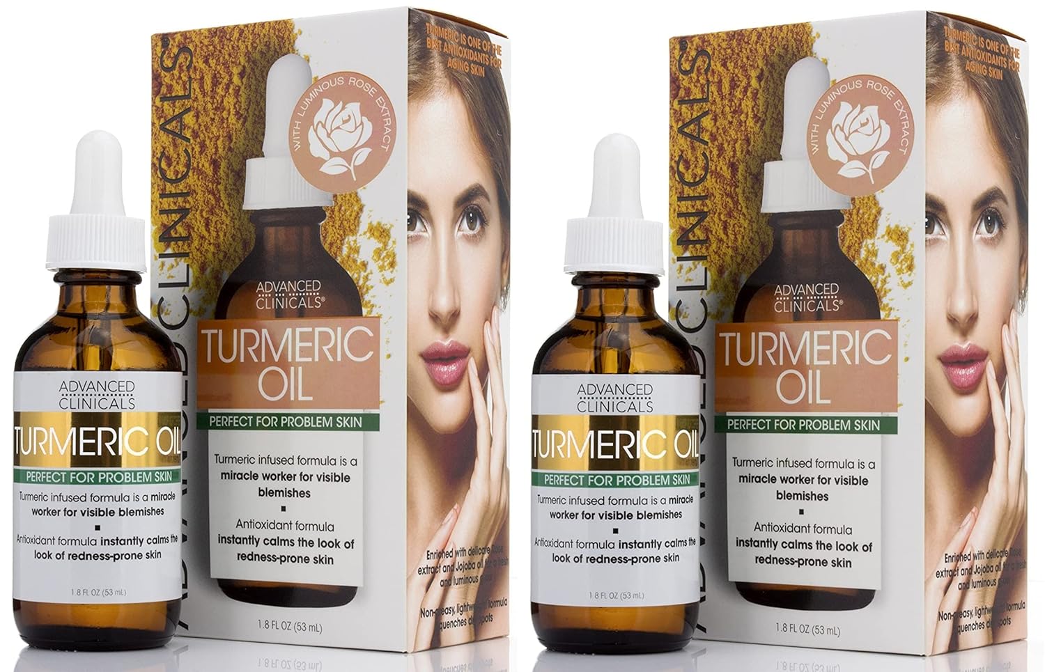 Advanced Clinicals Turmeric Oil Facial Skin Care Serum For Face. Moisturizer Skincare Formula W/Rose Extract & Jojoba Oil For Dry Skin, Redness, & Skin Blemishes, 1.8 Fl Oz (Pack of 2)