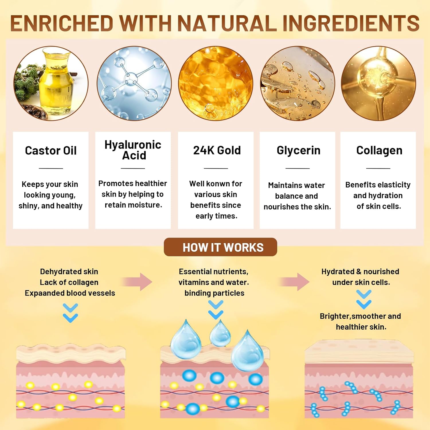 - Obvious Effect: 24k gold, plumping collagen, hydrating hyaluronic acid, moisturising oat peptide and calming rose essential oil